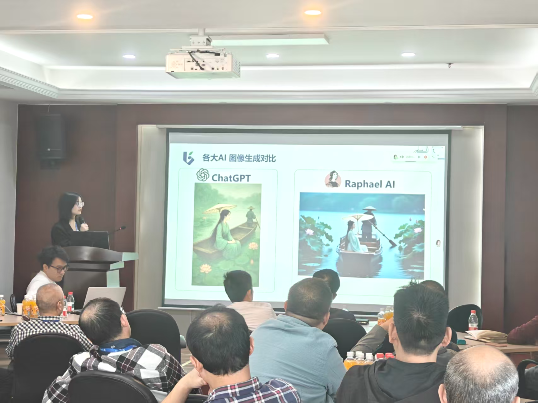 实操环节亮点十足:现场演示 “古装女子西湖撑伞泛舟” 图像生成,精准还原荷叶、小雨等细节;以 “若太阳西升,影子方向朝东” 推理题,直观展现AI深度思考的严谨性,让大家感受到AI在文本、图像、逻辑上的实力。
