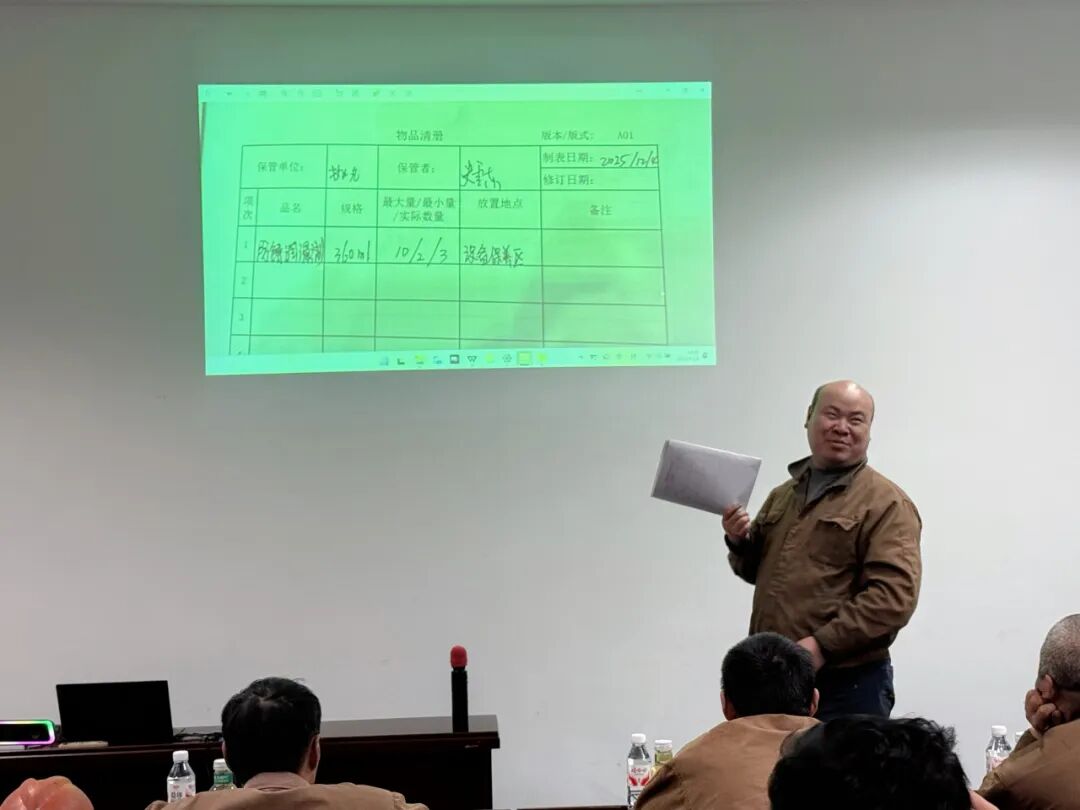 整理是效率提升的第一步,核心是“区分必需与非必需”生产用品,让现场资源精准匹配工作需求。培训中不仅详解“三清原则”即清理、清除、清爽与推行要点,还明确提供了“要与不要”的分类标准,从源头规避物资浪费与空间占用。实战演练环节,各小组围绕公司生产制造场景展开研讨,班组组长盛学明率先分享“物品要与不要的分类”定制化表格,滤抛组组长史雪东则带来“物品清册”编制成果,详细列明物资品名、规格、数量及置放地点,为公司现场“层别管理”提供了可直接落地的实操范本。